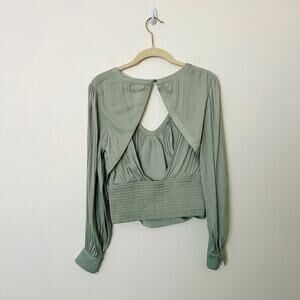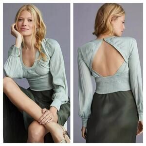 [Anthropologie] Sage Green Smocked Back Blouson Sleeve Blouse Size Medium M