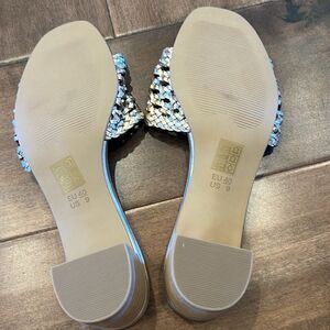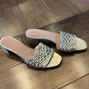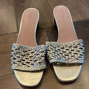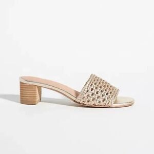 Anthropologie Salt + Umber Tripoli Heels Woven Gold Slide Dressy Sandals US 9