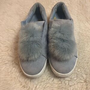 Sam Edelman Leya Fur Sneaker Dusty Blue Suede size 8