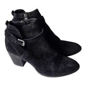 Anthropologie Sam Edelman Suede Ankle Boots 9.5M Myra Women Black Block Heel