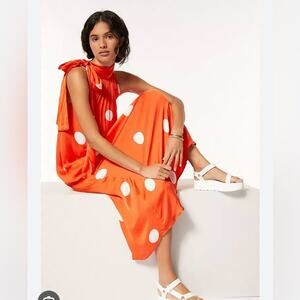 Anthropologie Samant Chauhan Blood Orange Minnie Polka Dot Maxi Dress size MP.