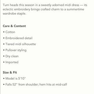 Reposhing this item I purchased from @klesak. Dress is still NWT - loved the style, just sadly wasn’t a great fit on me. There’s a couple small stains near the neckline on the back of the dress that were present when I purchased the dress (pictured), but I believe they would come out easily enough if spot treated.