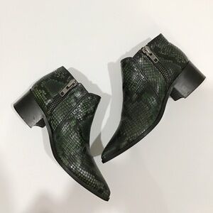 Anthropologie Samsoe & Samsoe Green Leather Snakeskin Bootie | 36 US 5.5