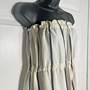 Anthropologie Sancia Jumpsuit Women Small Beige Stripe Linen Blend Wide Leg Slit