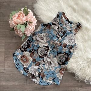 Anthropologie Sanctuary Floral Blue & Brown Button Down Blouse S