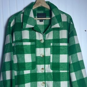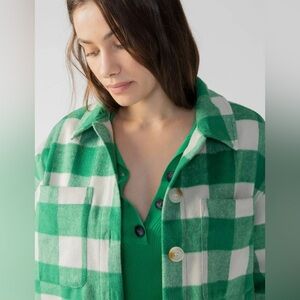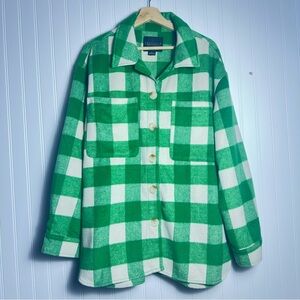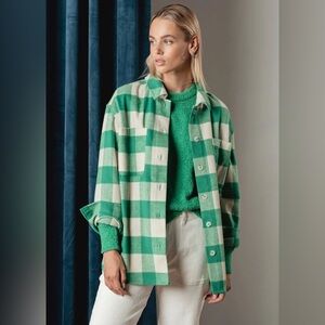 Anthropologie Sanctuary Green and White Plaid Jacket Button Up Winter Fall Relax