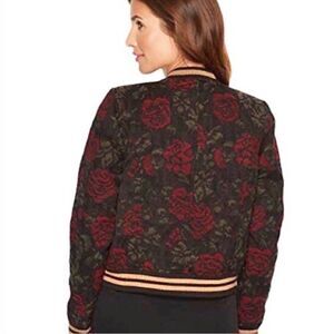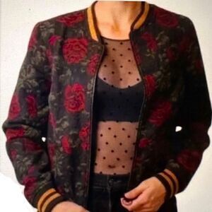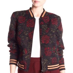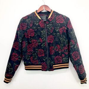 Anthropologie Sanctuary Rose Seduction Black Red Floral Print Zip Bomber Jacket