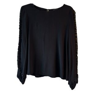Excellent condition no flaws This elegant black top features stylish ruffled sleeves, perfect for any occasion. Its sleek design offers a sophisticated look, making it a versatile addition to your wardrobe.