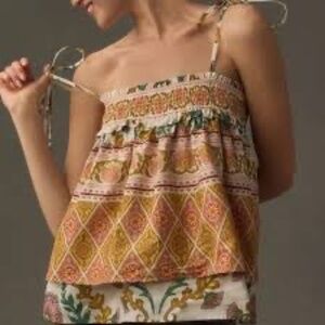 Anthropologie Sarah Hann Printed Babydoll Tank top Sz S Boho chic