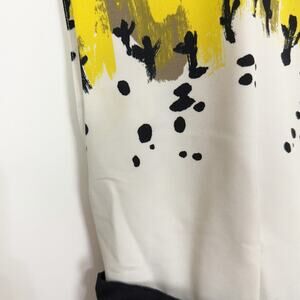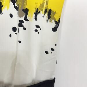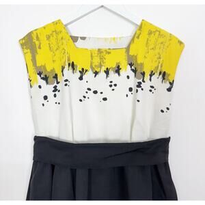 This dress was made in collaboration with Anthro and calligraphy artist Sariah Carson. Yellow, white and black dress with a retro flare. Side zip.