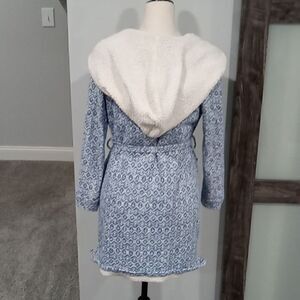 Anthropologie Sat Sun himalayan shearling blue and ivory plush bathrobe with pockets and belt. tassells have been removed. 73% cotton 27% poly. Size x small / small