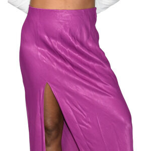 Anthropologie Satin Slip Skirt Purple Magenta Slit Midi Column Viscose Medium