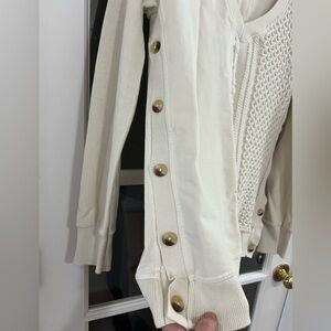Anthropologie Saturday Sunday Arcana Cream Cable Knit Sweatshirt - Size S - cream color - side buttons what can use open or close - beautiful piece