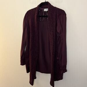 Anthropologie Saturday Sunday Athens Open Front Knit Cardigan- Burgundy