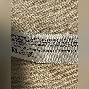 Wrap yourself in cozy comfort with this Anthropologie Saturday Sunday Collection Elise Open Fringe Sweater Cardigan in a beautiful beige color. Crafted in a size XS, this cardigan features an asymmetrical hemline and fringe details that add a touch of bohemian charm to any outfit. You'll love the feel of the ultra-soft fabric, it's like wearing your favorite blanket! Although there is light pilling throughout, it only adds to the charming character of this sweater cardigan. Whether you're running errands or lounging at home, this cozy piece is a must-have addition to your wardrobe.