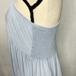 Anthropologie Saturday Sunday Blue Chambray Racer Back Smocked Dress Size XS