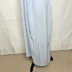 Anthropologie Saturday Sunday Blue Chambray Racer Back Smocked-Back Raw Hem Dress Pockets Size XS, 100% rayon.