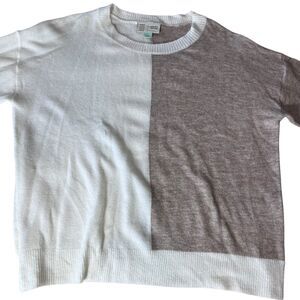 Anthropologie Saturday Sunday Cozy Sweater Womens Medium Color block Neutral Minimalist Capsule Wardrobe
