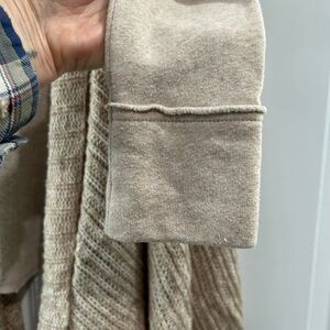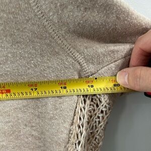 This Anthropologie cardigan sweater is a must-have for any fashion-forward woman. With a solid pattern and tight-knit fabric, it features a cowl neckline and raglan sleeves for a comfortable, relaxed fit. The sweater is perfect for any occasion, whether it's a casual day out, a wedding, or even workwear. The sweater is made of a blend of polyester, nylon, cotton, angora, and acrylic, making it machine washable and easy to care for. Its beige color and knit accents give it a bohemian and outdoor vibe, while its relaxed fit and open features make it perfect for any season, whether it's winter, fall, or spring. This Saturday Sunday cardigan is a versatile addition to any wardrobe, and it's sure to become a favorite.