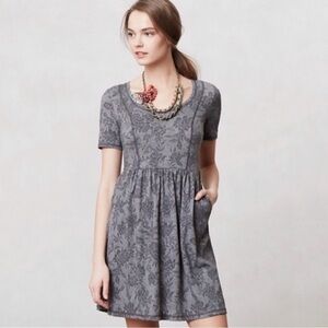 Anthropologie Saturday Sunday Jersey Floral Jacquard Dress Grey Small