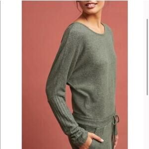 Anthropologie Saturday Sunday Olive Green Drop Waist Sweater Dress Size S