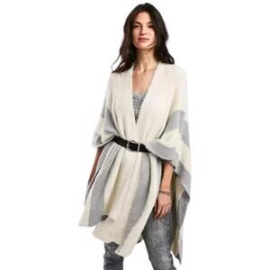 Anthropologie Saturday Sunday Poncho Womens Cream Gray Fuzzy Ribbed Knit Sweater