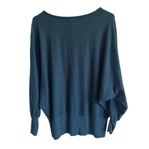 Stay cozy and effortlessly stylish in this soft and slouchy dolman-sleeve sweatshirt from Saturday/Sunday by Anthropologie. Made from a comfortable stretch-blend fabric, this piece features subtle horizontal ribbing, batwing-style sleeves, and a relaxed silhouette that tapers into a fitted waistband and cuffs. The deep teal-blue hue is perfect for year-round wear. Whether you're lounging or layering, this top is a comfy essential!