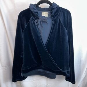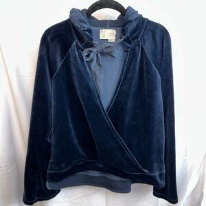 Anthropologie Saturday Sunday Sweater Hoodie Velvet Wrapped Plunge V-Neck Tie