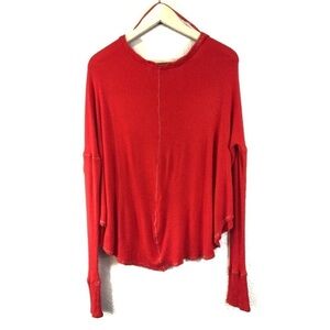 Saturday Sunday from Anthropologie. Thermal V Neck Long Sleeve Top. Red with Silver seams. Loose, oversized fit. Excellent condition. Size Medium.