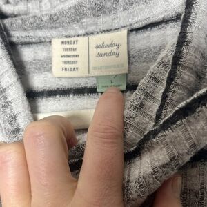 Easy throwing on and go with style top. High low hem allows you to do an easy French tuck look while ensuring bum coverage. Soft and stretchy make comfy for any occasion. No noted flaws. By Anthro brand Saturday Sunday.