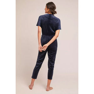 Anthropologie Saturday Sunday Velour Jumpsuit in Navy, Size Small
