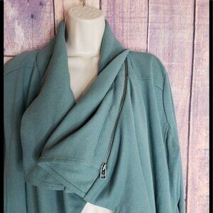 Hidden zipper detail around the neck that can be unzipped for a shawl or for extra cascading effect.