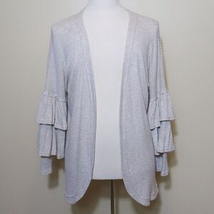 vanilla girl, clean girl, minimalist, tiered, statement sleeve, belled, layered, open front, waffle, textured, thermal, cardigan boho Lagenlook cozy closet staple