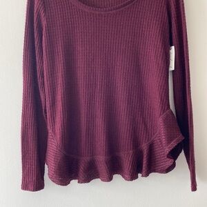 So soft and cozy! Ssturday/Sunday is the best hands down. Idk why I haven’t worn this I’m an idiot but brand new without tags so cute! Color is maroon I think called plum! (The other color stock photos really showed the cuteness and waffle knit better for ya but it’s adorbs in person)
