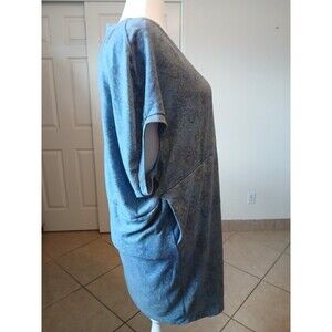 The Anthropologie Saturday Sunday Zelda Blue Print Tunic Dress in Women's size 1X is a stylish and comfortable knee-length dress perfect for casual occasions. Made from a blend of polyester, spandex, and viscose, this dress features a V-neckline, short sleeves, and a pullover closure. The blue animal print adds a touch of bohemian flair to the tunic style, making it versatile for various seasons and travel-themed outfits. Machine washable for easy care, this Anthropologie dress is a must-have for any woman's wardrobe.