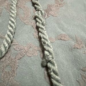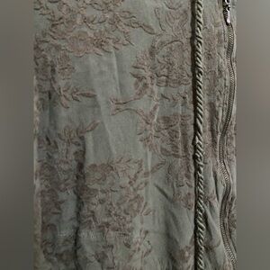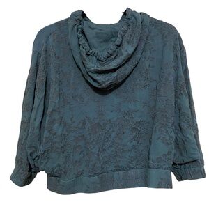 Anthropologie Saturday Sunday Zip Up Embroidered Gray/Green (hard to define color) The photos up close are more accurate of the color. Hoodie in Size Small. Pockets, cropped with butterfly sleeves. Good overall condition with a slight bit of gray on one of the pull cords s as shown in last photo. See photos for measurements to ensure proper fit.