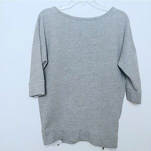 Anthropologie Saturday Sunday Half Sleeve Gray Sweater with bilateral side zippers with pale green chiffon material within zippers. Size Small. Great gently used condition. Approximate measurements are
