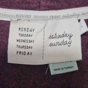Anthropologie Saturday Sunday lomg sweater maroon colorsize large per tags used no holes or stains has minimal pilling measurements approximately flat lay pit to pit 23 length 36 sleeve 28