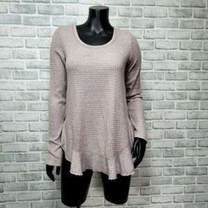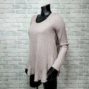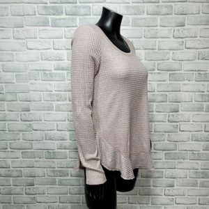 Anthropologie Saturday Sunday S Wendy Waffle Pullover Top Beige Split Back Cozy