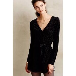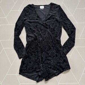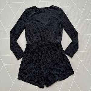 Anthropologie Saylor Burnout Velvet Romper Womens Size S Black Floral V-Neck