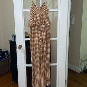 Anthropologie Saylor Laken Orange plaid gingham knot spaghetti ruffle romper