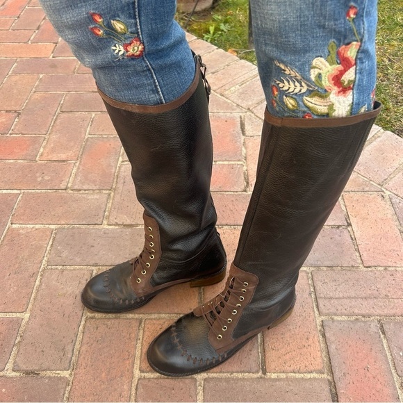 Add these tall equestrian black leather lace up riding boots to your Anthro collection