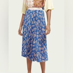 Anthropologie Scotch & Soda Blue Pink Palm Print Pleated Midi Skirt Small