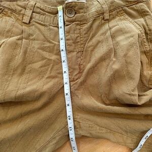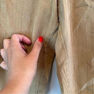 Elevate your wardrobe with these stylish Anthropologie Scout pants in a flattering slim fit. The tan chino-style pants feature slimming pleats and embroidered stripes for a touch of elegance. Perfect for any occasion, these pre-owned pants are a must-have for any fashion-forward woman.