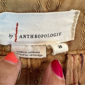 Anthropologie Scout Slim Pleated Pants Size 28 Tan Brown Embroidered Stripes