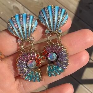 Anthropologie Seashell Blue Ocean Crystal Earrings