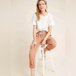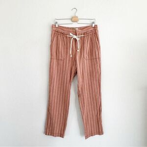 Anthropologie Seashore Striped Linen Pants Tie Waist Drawstring Pull-On Size M