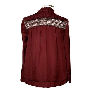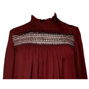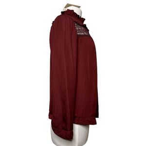 Anthropologie See You Soon Ruffled Eyelet Peasant Blouse Sz S Wine Boho Pullover