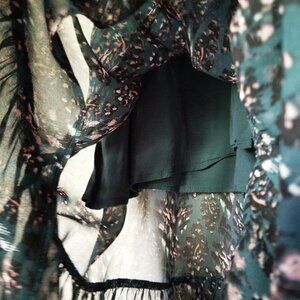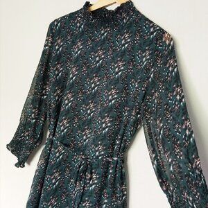 Anthropologie Seen Worn Kept Davina Leopard Belted Midi Dress Hunter Green US 8