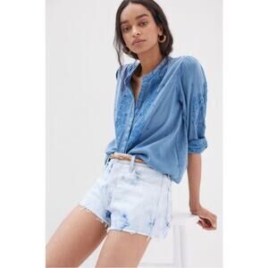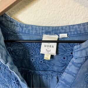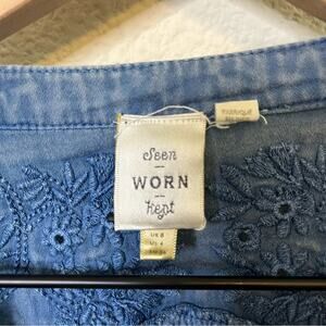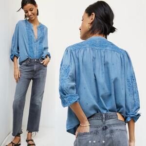 Anthropologie Seen Worn Kept Embroidered Cotton Flare-Sleeve Blouse Blue Size 4